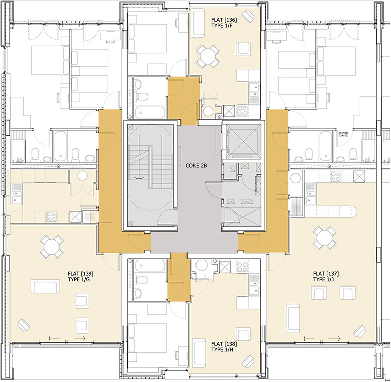 Mixed use residential project, private and affordable housing with retail units at ground floor level. Assisting project architect by amending marked drawings, in charge of conceptual design work for the health club and detail design work in the cores of the buildings.